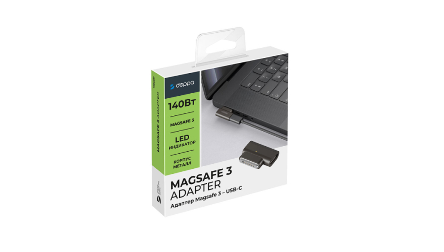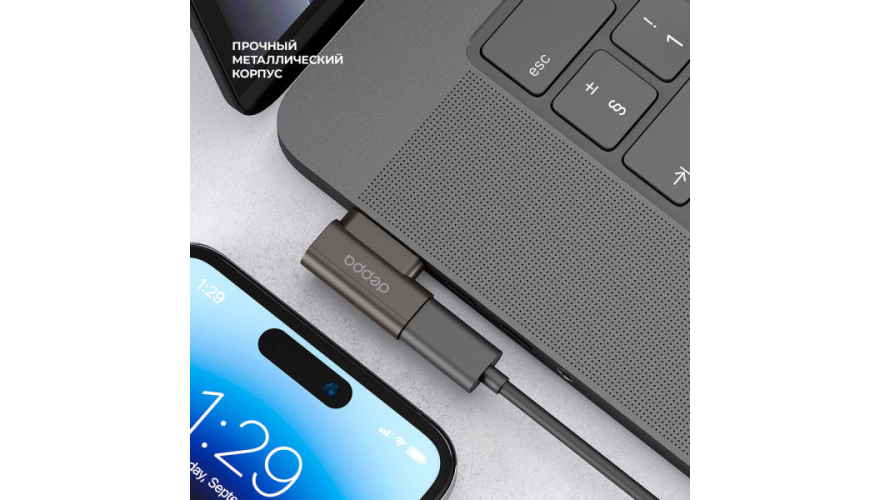 Поддерживает зарядку и передачу данных, а также обеспечивает высокую мощность передачи тока до 140 Вт.