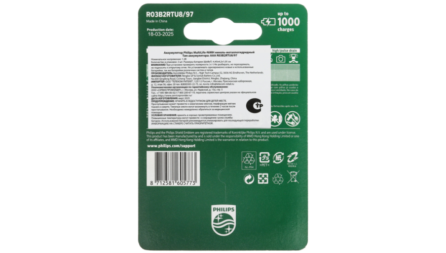 Батарейки Philips R03B2RTU8/97 идеально подходят для всех ваших цифровых устройств. Эти AAA-аккумуляторы большой емкости не нужно разряжать перед зарядкой, просто заряжайте их, когда вам удобно. Более того, вы можете заряжать их до тысячи раз. Элементы питания предназначены для применения в качестве источника питания в различных устройствах с высоким энергопотреблением: игрушки, плееры, фонари, фотоаппараты, пульты дистанционного управления и т.д.