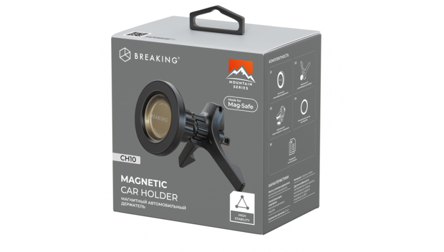 Держатель магнитный BREAKING CН10 позволит надежно закрепить ваш смартфон благодаря технологии MagSafe и усиленным неодимовым магнитам. Автомобильный держатель имеет минималистичный дизайн и идеально впишется в любой салон благодаря использованию в конструкции держателя остекленного материала и прочного пластика.