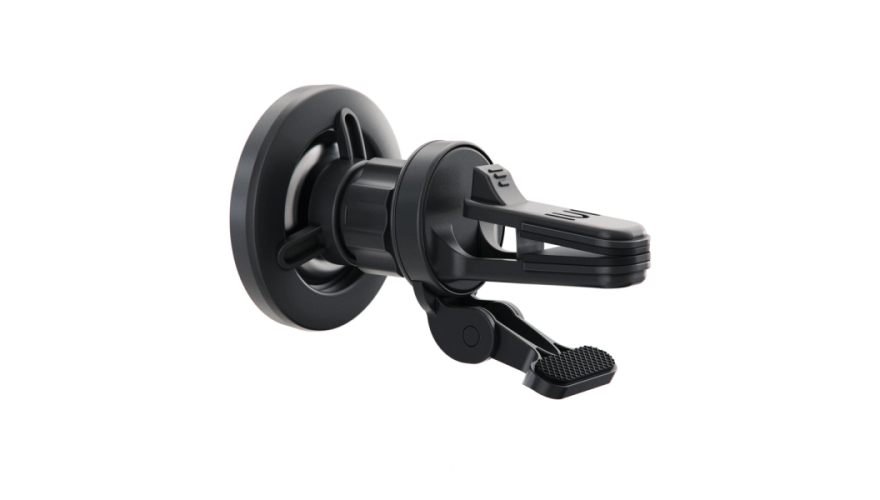 Держатель крепится в вентиляционную решетку автомобиля 2 удобными способами: с использованием регулируемого зажима-прищепки с подпоркой или при помощи крепления-трипода.