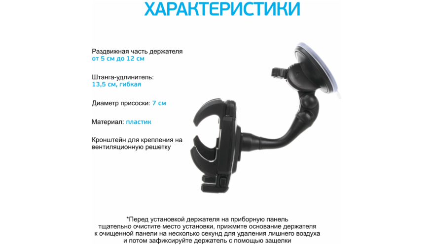 Стандартные держатели рассчитаны на диагональ от 4 до 6,7 дюймов — это большинство современных смартфонов. Универсальные модели подходят практически для всех телефонов. При покупке проверьте максимальную ширину зажима в характеристиках.