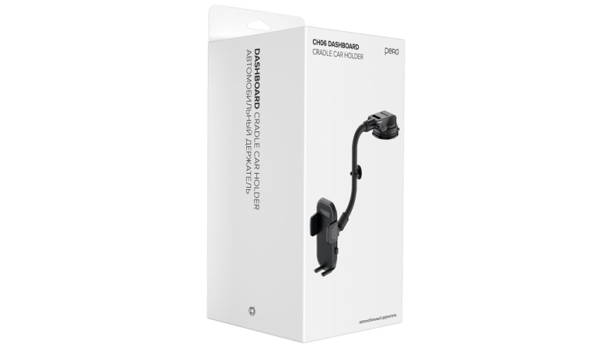 Автомобильный держатель PERO CH06 крепится к торпеде автомобиля или на лобовое стекло при помощи присоски. Удобный эргономичный дизайн не мешающий обзору. Вращение корпуса держателя на 360 градусов.