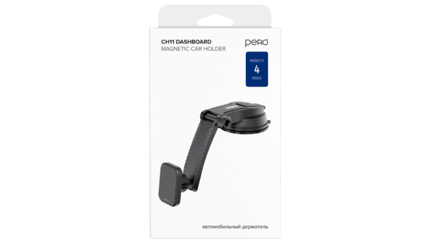 Автодержатель PERO CH11 — это магнитный автомобильный держатель, который крепится к торпеде автомобиля или лобовому стеклу с помощью присоски. Он имеет удобный эргономичный дизайн и вращается на 360 градусов. Внутри расположены четыре магнита, а в комплекте идут две металлические пластины для крепления смартфона.