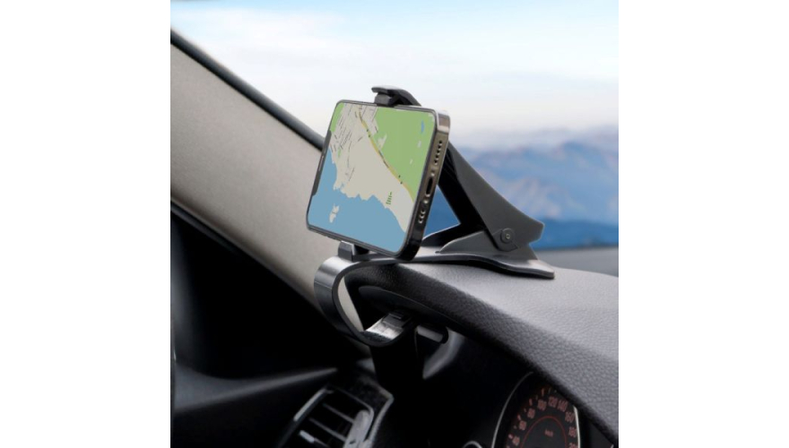 Держатель с креплением на приборную панель автомобиля.