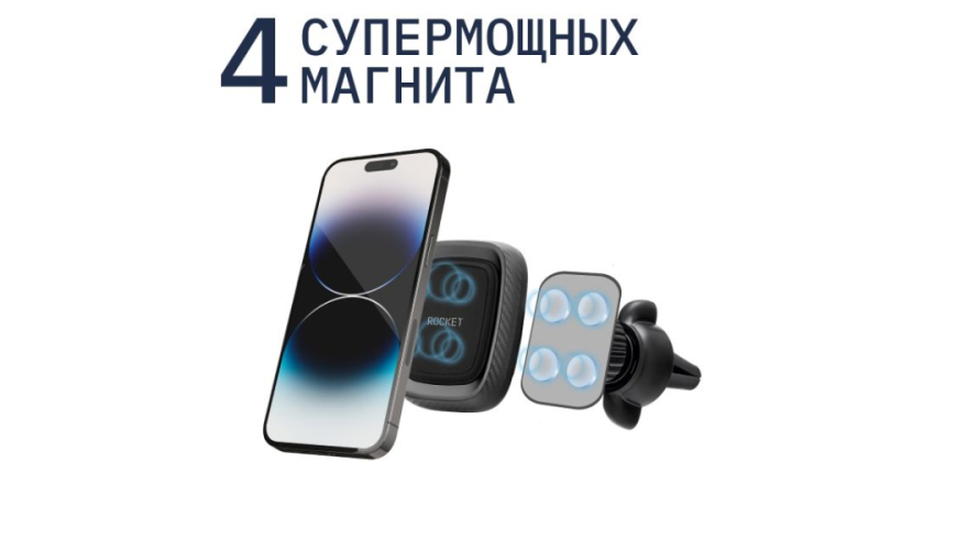 КОМПАКТНЫЙ АВТОМОБИЛЬНЫЙ ДЕРЖАТЕЛЬ С МОЩНЫМИ МАГНИТАМИ НАДЕЖНО ФИКСИРУЕТ И УДЕРЖИВАЕТ СМАРТФОН, НЕ ОГРАНИЧИВАЯ ДОСТУП К ДИСПЛЕЮ. УНИВЕРСАЛЬНОЕ НЕСКОЛЬЗЯЩЕЕ КРЕПЛЕНИЕ ПОДХОДИТ К БОЛЬШИНСТВУ ДЕФЛЕКТОРОВ.