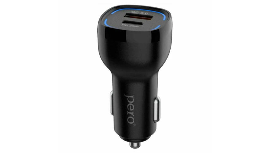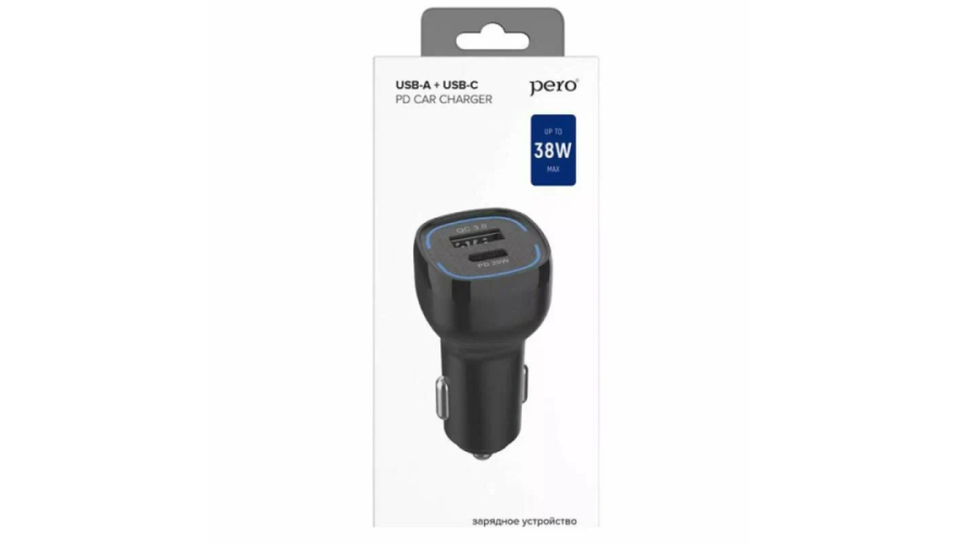 Автомобильное зарядное устройство PERO AC05 оснащено 2-мя USB-портами — USB-А с мощностью 18Вт и максимальной силой тока до 3А и USB Type-C с функцией быстрой зарядки Power Delivery, мощностью 20Вт и максимальным силой тока до 3А. Суммарная мощность портов составляет 38 Вт. При одновременном использовании USB-портов, автоматически регулируется выходной ток. Наличие LED-подсветки.