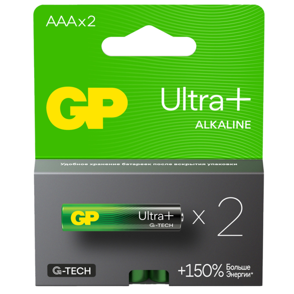В семействе GP Batteries – обновление! Линейка бытовых элементов питания GP Ultra Plus G-Tech! Это самые мощные щелочные батарейки GP для использования в энергоемких приборах (цифровые камеры, фотовспышки, электронные игры и радиоуправляемые игрушки). Батарейки GP Ultra Plus G-Tech работают на 30% дольше обычных алкалиновых батареек. Благодаря более тщательной очистке от примесей, таких как медь и железо, батарейки имеют высокую токоотдачу и низкий уровень саморазряда. По сравнению с более ранним поколением батареек GP Super, GP Ultra Plus G-Tech обеспечивают в разных типах устройств до 100% более высокую продолжительность работы.Батарейки GP Ultra Plus G-Tech также отличаются от предшественников долговечностью. Инновационная технология производства стального стаканчика обеспечивает более равномерное нанесение никель-кадмиевого покрытия, повышая стойкость к коррозии. А современные полимеры в составе предохранительного клапана обеспечивают полную защиту от протечек. Срок годности батареек GP Ultra Plus G-Tech составляет 10 лет.