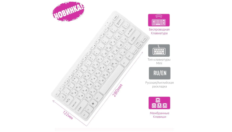 Беспроводная клавиатура мини Olmio WK-05 — это надежное и удобное устройство, которое сочетает в себе компактность и функциональность. Благодаря русской и английской гравировке кнопок, разнообразию цветовых вариантов и беспроводному подключению, она удовлетворит нужды самых требовательных пользователей.