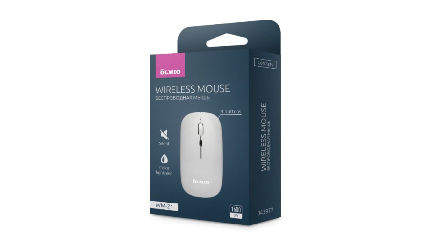 Обратите внимание на беспроводную мышь WM-21 от Olmio. Данная компьютерная мышь имеет ряд преимуществ. Беспроводная мышь абсолютно бесшумна в работе. Удобна в использовании как левой, так и правой рукой за счет эргономичного дизайна. Компьютерная беспроводная мышь WM-21 оснащена RGB подсветкой. Разрешение сенсора у беспроводной мыши 1 600 DPI. Радиус действия беспроводной мышки -2 метра, вполне достаточно для комфортной, бесперебойной работы.