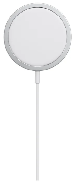 Apple MagSafe Charger со стильным белым дизайном и округлой платформой дополнено встроенными магнитами. Это помогает точно зафиксировать смартфон на площадке, не оказывает вреда аккумуляторной батарее.