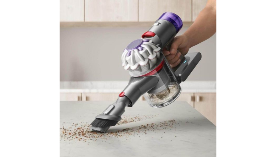 Пылесос Dyson V8 легкий и сбалансированный - подходит для уборки высоко расположенных поверхностей, между мебелью и под ней.