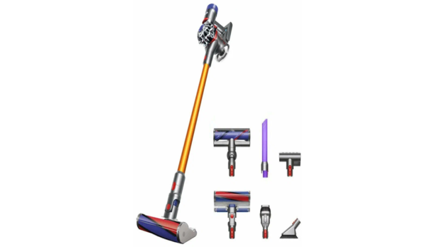 Пылесос Dyson V8 легкий и сбалансированный - подходит для уборки высоко расположенных поверхностей, между мебелью и под ней.