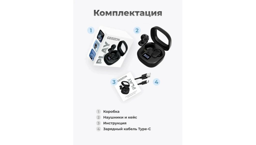 Наушники Geozon подключаются через Bluetooth, предоставляя вам свободу передвижения без проводов. Это делает их отличным выбором для занятий спортом, прогулок или поездок. Зарядка чехла осуществляется проводным способом, что обеспечивает надежность и стабильность в использовании.