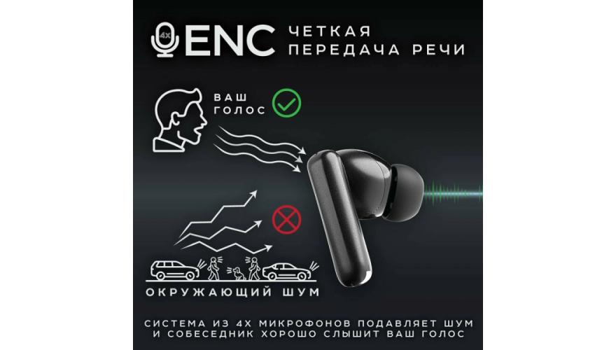 Качественные модели оснащены микрофонами с шумоподавлением ENC. Алгоритмы фильтруют внешний шум, передавая голос чище. Даже в метро или кафе собеседник слышит без помех, благодаря направленным микрофонам.