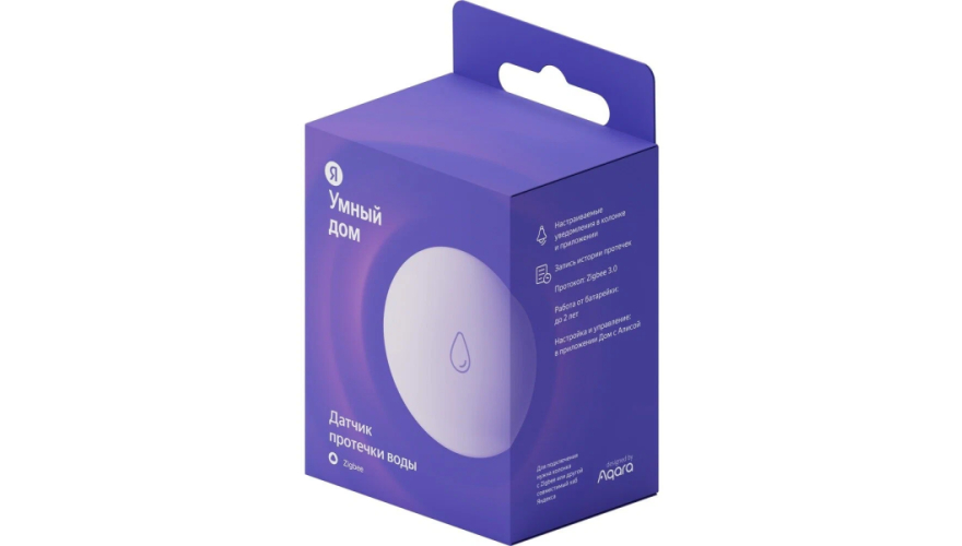 Беспроводной компактный датчик легко установить на полу в кухне или в ванной. Он сразу сообщит, если обнаружит там воду, и вы сможете быстро отреагировать и избежать неприятных сюрпризов. Просто настройте пуш-уведомления в приложении Дом с Алисой.