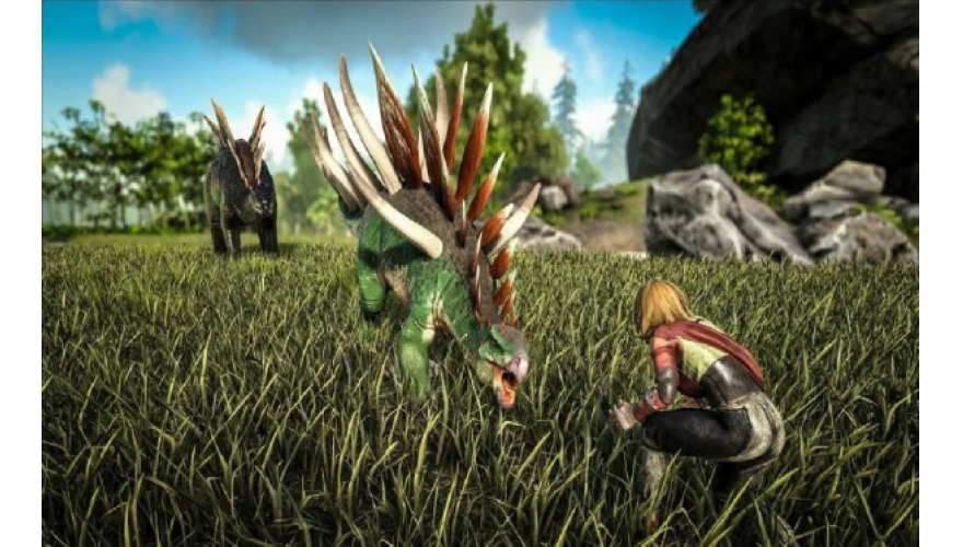 Требуется обновление игры через интернет! Будучи выброшенным голым на берег таинственного острова под названием ARK, замерзая и умирая с голоду, вам придется охотиться, собирать ресурсы, создавать предметы, выращивать урожай, исследовать технологии и строить укрытия, чтобы противостоять погодным условиям. Используйте свою рость и ресурсы, чтобы убивать или приручать и разводить громадных динозавров и других первобытных существ, населяющих остров, и объединяйтесь с сотней других игроков или охотьтесь на них, чтобы выживать, властвовать. и преодолевать трудности! приручай, тренируй, разводи И езди верхом на динозаврах В живой экосистеме Динозавры, прочие существа и их разведение! – более чем 50 существ в раннем доступе и 100+ к финальному релизу – можно приручить с помощью сложной системы захвата и привязанности, включая ослабление неприрученного зверя до полного оглушения и затем уход за ним с кормлением соответствующей пищей. После приручения, вы сможете отдавать команды вашему питомцу, выполнение которых будет зависеть от того, насколько хорошо вы его приручили и обучили. Питомцам, уровень которых будет расти, потребуется пища, они могут нести вещи и снаряжение, например, броню, могут нести добычу обратно в ваше поселение в зависимости от их силы, а на более крупных животных можно ездить и непосредственно управлять ими! Пролетите на птеродактиле над снежными вершинами горами, перебрось союзников через стены противника, гоняйся сквозь джунгли со своей стаей рапторов, прорвись на вражескую базу на гигантском бронтозавре или преследуй добычу, сидя на спине яростного Ти-Рекса! Стань частью жизненного цикла динамической экосистемы со своей собственной цепочкой питания, где вы всего лишь одно звено, среди многих видов существ, борющихся за господство и выживание. Питомцев также можно разводить, спаривая с противоположным полом, проводя последовательную селекцию с помощью системы черт, основанной на рекомбинантном генетическом наследовании. Этот процесс включает в себя как инкубацию яиц, так и и развитие беременности у млекопитающих! Или, проще говоря, разводите и выращивайте детенышей динозавров и прочих существ! пища, вода, температура И погода Вы должны есть и пить, чтобы выжить, используя разные виды растений и мяса, включая человеческое, имеющие различные питательные свойства. Насущной проблемой также является обеспечение пресной водой вашего жилища и ее запас в инвентаре. Все физические действия потребляют параметры еды и воды, поэтому дальние перемещения сопряжены с угрозой выживанию! Груз инвентаря заставляет вас двигаться медленнее, а цикл смены дня и ночи вместе с капризными погодными условиями бросают еще один вызов посредством колебания температуры окружающей среды, в результате чего ваши голод или жажда усиливаются. Разводите огонь или стройте укрытия, изготавливайте разнообразную одежду и доспехи с изменяемым внешним видом, чтобы защитить себя от физического урона и экстремальных температур, использующих динамическую систему расчета сопротивления жаре и холоду, как внутри помещения, так и снаружи! сбор ресурсов, возведение построек И покраска предметов Вырубая лес, изобилующий деревьями, и добывая металл и другие ценные ресурсы, вы можете изготавливать различные элементы для возведения массивных 
