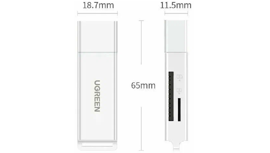 Кардридер UGREEN CM104 используется для чтения карт SD и microSD, на корпусе есть по одному слоту для каждого вида. Устройство подключается к USB-порту на компьютере, ноутбуке или другом устройстве и обеспечивает возможность передачи или просмотра информации со съемных носителей. Кардридер универсален, может использоваться с большинством популярных операционных систем: Windows, Mac OS, Linux. Использование стандарта USB 3.0 обеспечивает высокую скорость передачи данных: до 5 ГБ/сек.