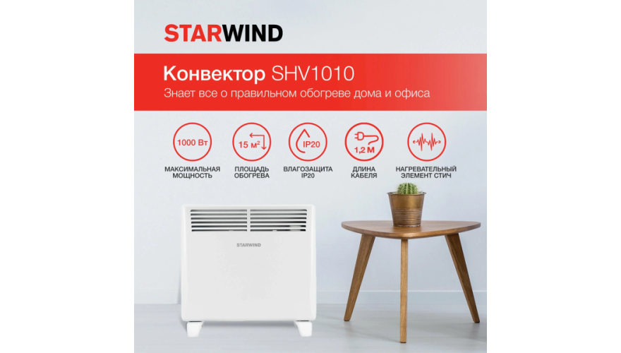 Конвектор Starwind SHV1010 - это отличный выбор для тех, кто стремится обеспечить комфортное и эффективное отопление помещений без больших инвестиций и сложностей.