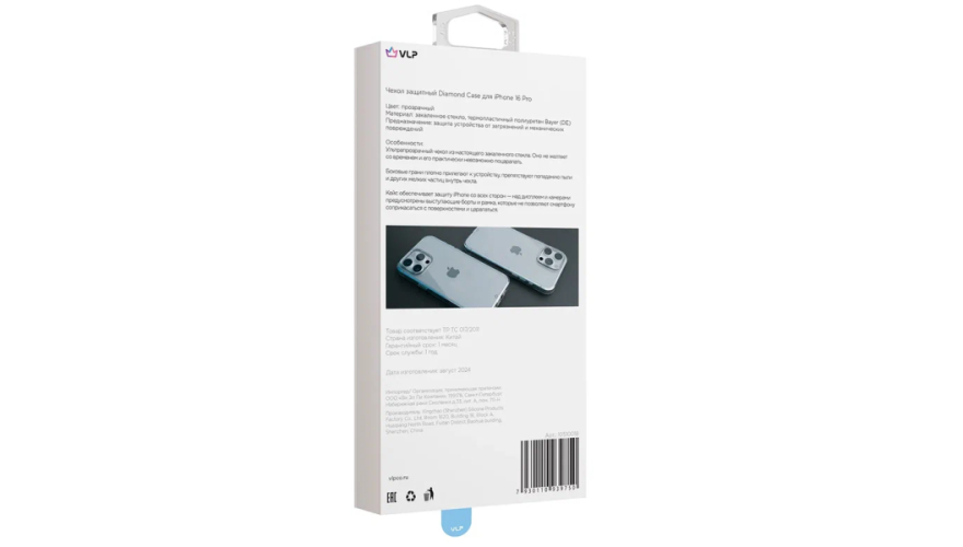 Чехол-накладка силикон VLP Diamond Case для Apple iPhone 16 Pro Прозрачный