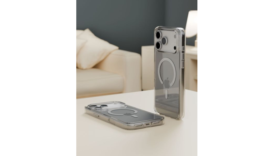Ультрапрозрачный чехол из настоящего закаленного стекла. Оно не желтеет со временем и его практически невозможно поцарапать. Боковые грани плотно прилегают к устройству, препятствуют попаданию пыли и других мелких частиц внутрь чехла. Кейс обеспечивает защиту iPhone со всех сторон — над дисплеем и камерами предусмотрены выступающие борта и рамка, которые не позволяют смартфону соприкасаться с поверхностями и царапаться. Поддерживает технологию MagSafe.