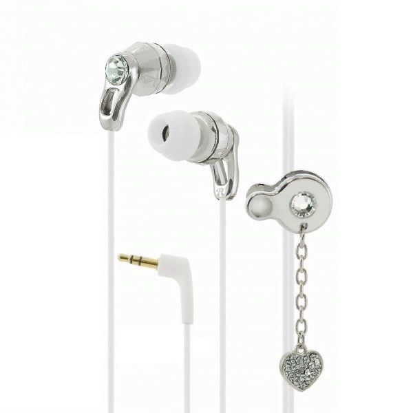 Королевский дизайн завораживает игрой света на глянцевых хромированных гранях корпуса, где каждый блик подчеркивает великолепие сверкающих страз в элегантной серебристой оправе. Это не просто наушники — это настоящее произведение искусства.
