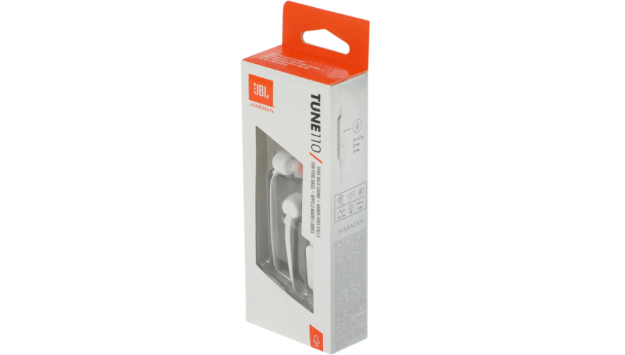 Вакуумные наушники с микрофоном JBL T110 быстро станут вашим повседневным спутником, обеспечивающим комфортное использование на работе, дома и в дороге. Внутри прочного корпуса ушных вкладышей находится пара 8,6-мм динамиков, которые дают возможность насладиться звуком во всём диапазоне частот от 20 до 20 кГц. Особенно JBL T110 порадуют глубокими и мощными басами — благодаря фирменной технологии JBL Pure Bass они словно перемещают вас в концертный зал.