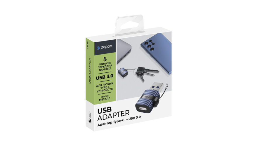 OTG адаптер USB 3.0 – Type-С позволит вам расширить возможности вашего смартфона! Адаптер предназначен для подключения устройств, оснащенных разъемом Type-С к компьютерам и зарядным устройствам с разъемами USB-A. Переходник-адаптер от Deppa обеспечивает высокую скорость передачи данных до 5 Гбит/сек. Компактный и стильный переходник-адаптер выполнен в металлическом корпусе, который оснащен креплением, благодаря чему адаптер не потеряется.