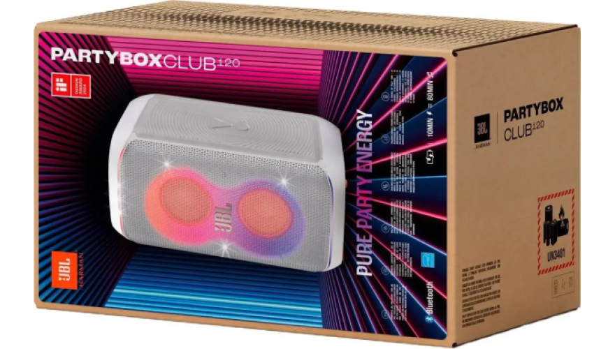 Разноцветная подсветка со световыми дорожками и стробоскопическими эффектами в ритм музыки создает атмосферу погружения. Для удаленного управления предлагается приложение JBL PartyBox. Портативная аудиосистема JBL PartyBox Club 120 работает от сети и аккумулятора. На одном заряде время автономности составляет до 12 часов.