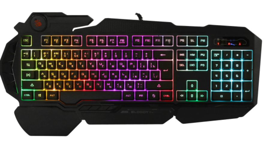 Клавиатура проводная A4Tech Bloody B310N привлечет внимание любого пользователя оригинальной формой корпуса и агрессивным дизайном, обеспеченным RGB-подсветкой клавиш. Такая периферия легко займет главное место на любом игровом столе и позволит с комфортом управлять игровыми персонажами при прохождении любых игр. Конструкция этой модели представлена 113 клавишами с тактильно приятным и практически бесшумным мембранным ходом. При помощи специального софта клавиши можно запрограммировать, чтобы одним нажатием игровой персонаж выполнял целую последовательность действий.