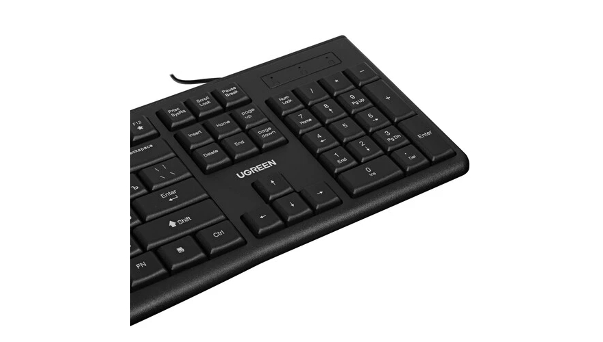 Клавиатура+мышь UGREEN MK003 подключаются к компьютеру по проводному кабелю с интерфейсом USB. Устройства предназначены для удобного управления в программах и ресурсах сети Интернет. Клавиатура имеет полноразмерную раскладку со 104 клавишами, включая блок для ввода числовых данных. Манипулятор оснащен 3 кнопками и оптическим светодиодным датчиком с разрешающей способностью 1200 dpi, который гарантирует точное позиционирование курсора. Клавиатура и мышь UGREEN MK003 выполнены в черном пластиковом корпусе с приятной фактурой, что обеспечивает эргономичность и практичность.