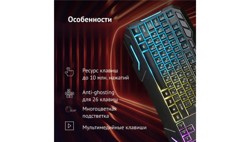 Купить клавиатуру можно на долгие годы. Корпус изготовлен из качественного, прочного пластика и окрашен в черный цвет. Стоит отметить и приятный для глаз дизайн корпуса, благодаря которому данная клавиатура сможет занять достойное место на рабочем столе пользователя