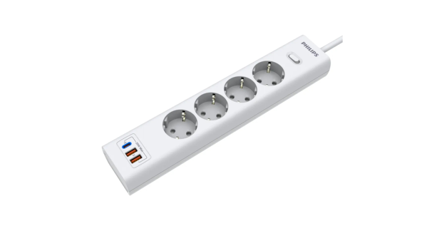 Сетевой фильтр удлинитель Philips CHP4346WA/51 представляет собой удобное устройство, которое позволяет подключать несколько устройств к одной розетке. Этот пилот удлинитель оснащен 4 розетками и 2 USB-А, а также одним портом Type-C, что обеспечивает возможность подключения различных электронных устройств, можно использовать как фильтр для компьютера, а также хорошо подойдет как удлинитель для гирлянды, поэтому он является многофункциональным. Длина разветвителя электрического составляет 2 метра, что позволяет свободно располагать подключенные устройства в нужном месте. Важным преимуществом розетки с выключателем является наличие заземления, которое обеспечивает безопасность и защиту от перегрузок. Тройник с usb 3.0 обладает многофункциональностью, позволяя подключать не только электрические приборы, но и заряжать устройства с помощью USB-портов. Сетевой фильтр Philips обладает передовой технологией быстрой зарядки QC 3.0 - Смартфон непрерывно посылает зарядному устройству информацию о состоянии аккумулятора. На основании этой информации блок питания регулирует выходную мощность, изменяя напряжение и силу тока. Белый цвет разветвителя с type c придает ему стильный и современный вид, а прочный корпус обеспечивает долговечность и надежность использования. Этот удлинитель силовой идеально подходит для использования дома или в офисе, где требуется подключение и зарядка сразу нескольких устройств. Идеально подойдет для использования дома, гаража, склада, офиса.