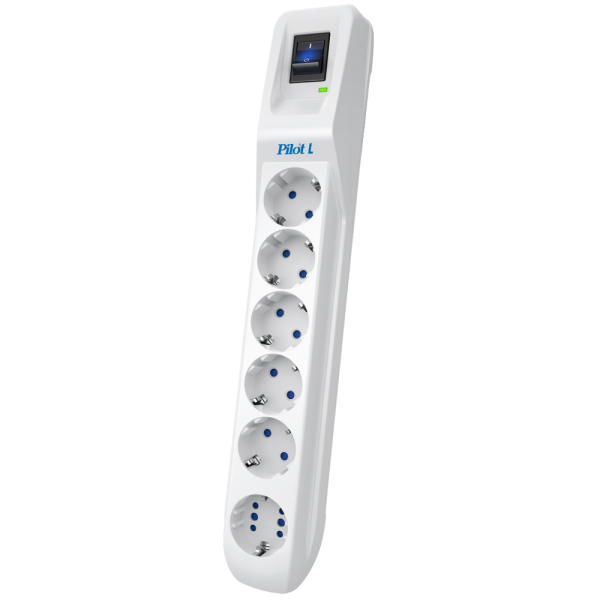 Сетевой фильтр Pilot L оснащен 6 стандартными евро-розетками без заземляющего контакта, благодаря чему отличается универсальностью и широкими возможностями для подключения самого разного оборудования — компьютеров, бытовой, а также офисной техники. В основе модели используются первоклассные компоненты. Максимальная мощность подключенной нагрузки может достигать 2200 Вт при максимальном токе до 10 А. Другой особенностью устройства является наличие плавкого предохранителя, термопредохранителя, а также термопрерывателя, что обеспечивает высокую надежность и безопасность при использовании.