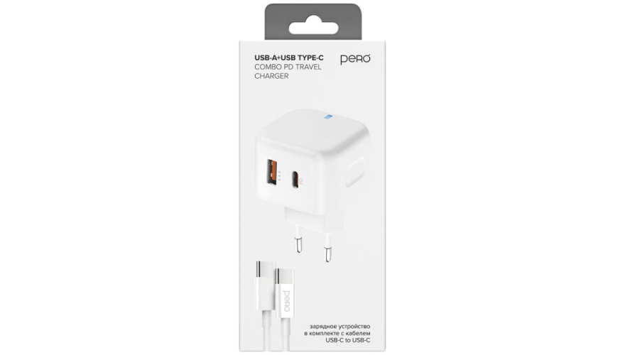СЗУ PERO TC10 USB-C/USB-A Fast Charge 20W с кабелем Type-C - Type-C White (Белый)