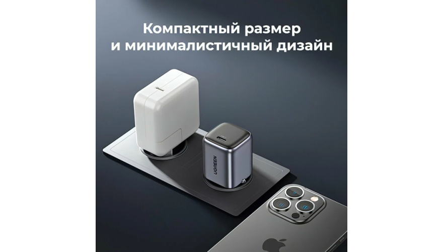 UGREEN CD318 (90664) Nexode Mini USB-C 20W PD GaN Fast Charger EU - это удобное сетевое зарядное устройство, которое обеспечивает быструю зарядку вашего устройства с поддержкой USB-C. Оно имеет компактный размер, серый цвет и подходит для использования дома, в офисе или в путешествиях. Устройство поддерживает различные протоколы быстрой зарядки, обеспечивая эффективное и быстрое зарядное устройство для вашего смартфона, планшета или ноутбука. Независимо от источника питания - 100-240V~50/60Hz, CD318 гарантирует стабильный поток энергии для зарядки вашего устройства.