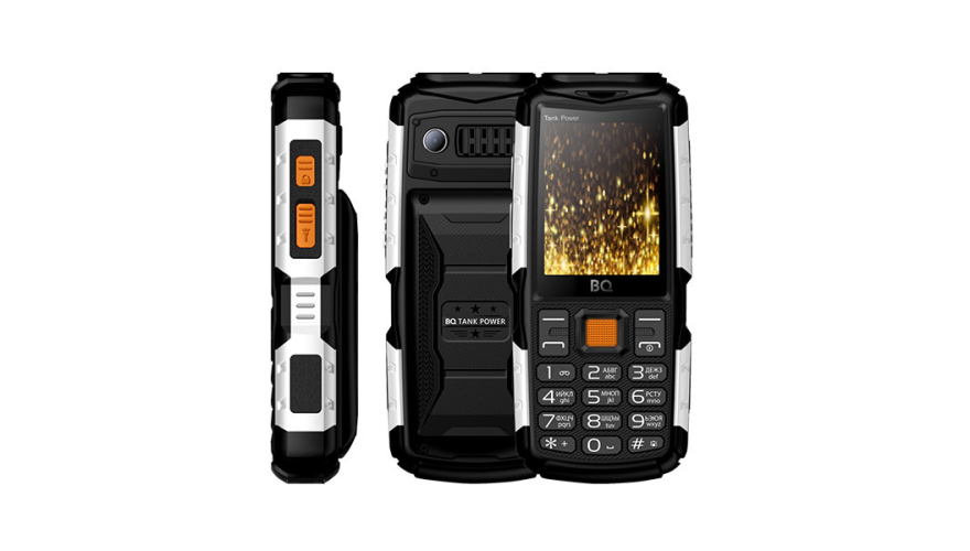 Прочный мобильный телефон BQ 2430 Tank Power в брутальном дизайне создан для путешественников и людей, работающих в экстремальных условиях. Обладая аккумулятором повышенной емкости 4000 мАч, телефон уверенно держит заряд батареи, оставаясь активным в режиме ожидания до двух месяцев. Функция Power Bank позволяет использовать BQ 2430 Tank Power в качестве портативного аккумулятора и подзаряжать от него другие устройства.