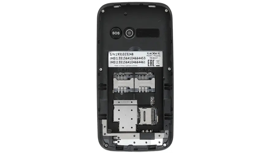 Мобильный телефон teXet TM-B227 Black подходит для эксплуатации слабовидящими пользователями, поскольку обладает клавишами большого размера с крупными цифрами. Предусмотренная на задней панели пластикового корпуса кнопка SOS позволяет в случае экстренной ситуации отправить SMS-сообщение или набрать ранее запрограммированный номер.