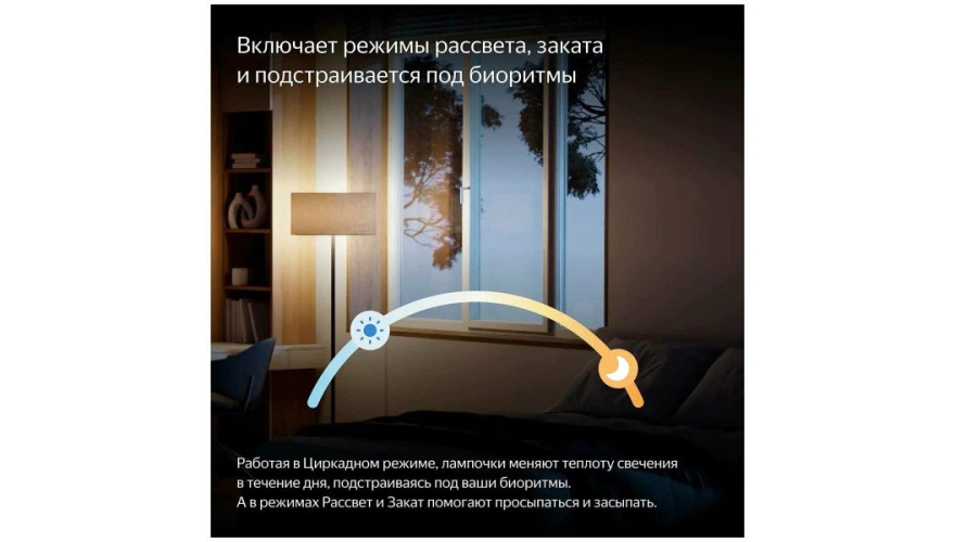 Управлять лампочкой можно с помощью нескольких удобных способов. Например, вы можете попросить Алису через Яндекс Станцию приглушить свет или выключить его по всему дому. Также доступно управление через приложение Дом с Алисой, где можно настроить свет по расписанию или запускать специальные сценарии, такие как Рассвет. В этом режиме лампочка будет постепенно увеличивать яркость и менять цвет от тёплого до яркого белого, чтобы помочь вам плавно проснуться. Дополнительно можно создать сценарии для взаимодействия с другими устройствами, например, настроить включение света в прихожей при срабатывании датчика движения.