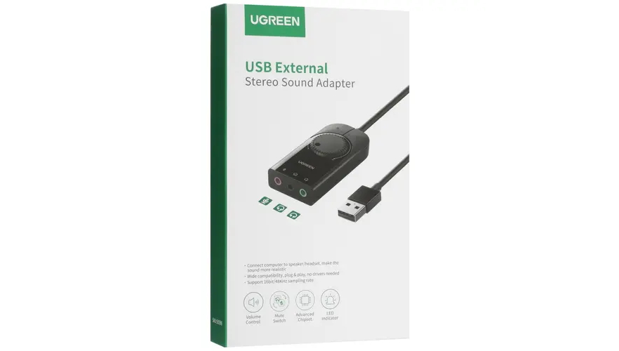 Особенностью дискретного аудиоадаптера Ugreen CM129 является наличие поворотного переключателя для выбора громкости звука при воспроизведении музыки. Устройство не нуждается в установке драйверов для работы с ПК и демонстрирует совместимость практически с любым компьютером или ноутбуком под управлением Windows и macOS.
