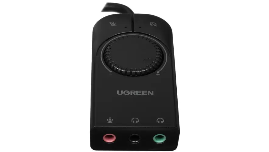 Внешняя звуковая карта Ugreen CM129 позиционируется как дискретный звуковой адаптер с подключением по USB, который можно использовать с ПК при отсутствии в нем интегрированной аудиокарты. При подключении аудиоадаптер с черным корпусом занимает всего один порт USB Type-A и предоставляет три акустических порта jack 3.5 мм, среди которых есть акустический вход и выход для присоединения наушников и микрофона, а также один комбинированный порт, к которому можно подключить гарнитуру со встроенным микрофоном.
