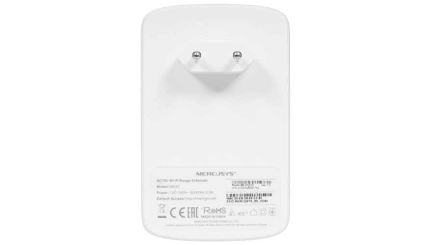 Усилитель беспроводного сигнала Mercusys ME20 повышает стабильность подключения устройств к сети Wi-Fi. Благодаря поддержке двух диапазонов 2.4/5 ГГц и совокупной скорости 750 Мбит/с он устраняет зоны со слабым покрытием в помещении. Устройство отличается совместимостью со всеми точками доступа и роутерами Wi-Fi. На корпусе расположены вилка для питания от розетки, порт LAN с пропускной способностью 10/100 Мбит/с для организации проводного сетевого подключения и световой индикатор состояния. Усилитель Mercusys ME20 отличается простотой подключения и настройки.
